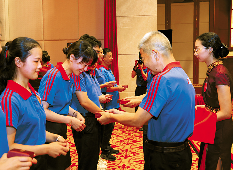 為表達對多年來與集團風雨同舟、攜手共進的同事們的感激和感謝,在慶祝活動上,董事長、副董事長等集團領導分別為在集團工作剛滿5年、10年、15年、20年和25年的207名同事頒發(fā)了黃金鑲鉆“風雨同舟”紀念胸章。