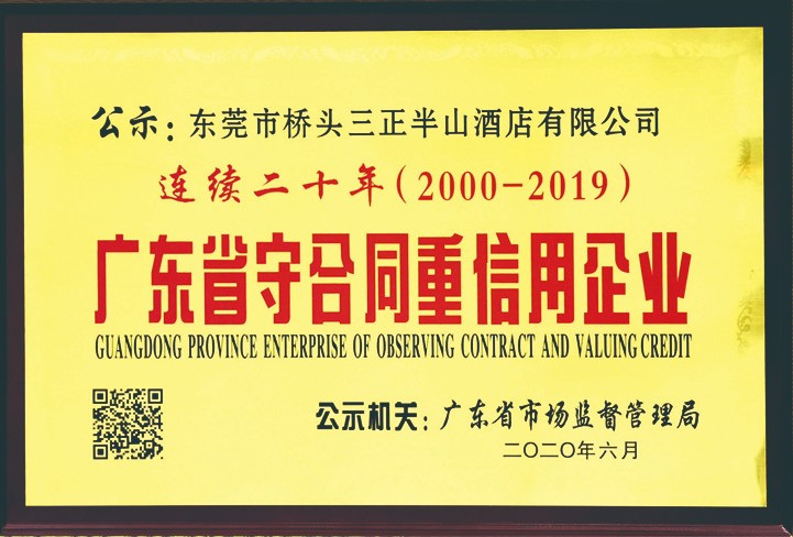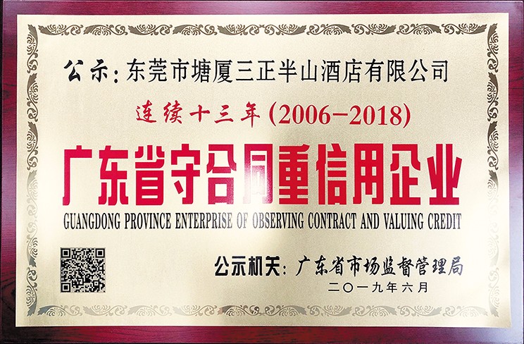 7.塘廈三正半山溫泉酒店: 連續(xù)十五年獲“廣東省守合同重信用企業(yè)”