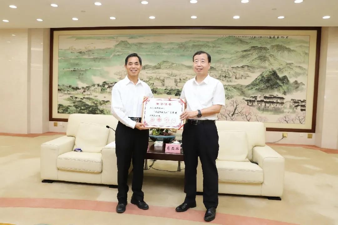 5.8月19日下午,東莞市委書記、市人大常委會(huì)主任肖亞非會(huì)見了載譽(yù)歸來的第三屆全國(guó)“最美擁軍人物”莫浩棠。會(huì)見活動(dòng)由東莞市政府副市長(zhǎng)黎軍主持,李克強(qiáng)副廳長(zhǎng)宣讀了表彰通報(bào),肖亞非書記向莫浩棠董事長(zhǎng)頒發(fā)了榮譽(yù)證書。