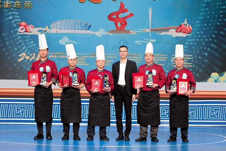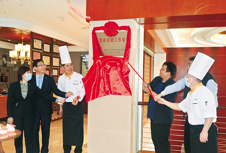 4.11月25日下午,“創(chuàng)意粵菜 品出東莞”2021年?yáng)|莞市“粵菜師傅”金箸獎(jiǎng)烹飪電視大賽總決賽暨2021東莞市技能節(jié)閉幕式上,塘廈三正半山溫泉酒店漢宮中餐廳最終榮獲銅獎(jiǎng),同時(shí)被東莞市人力資源和社會(huì)保障局授予“東莞市名廚工作室”牌匾。