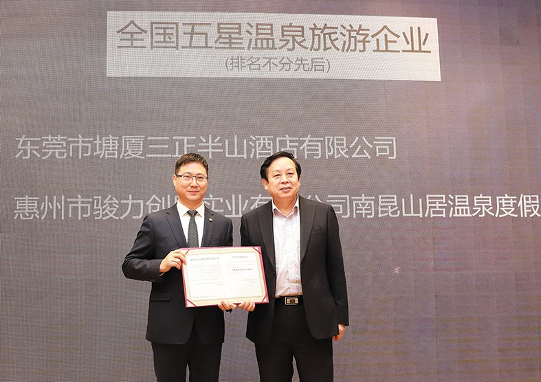 1.12月7日-9日,由中國(guó)旅游協(xié)會(huì)溫泉旅游分會(huì)主辦的第八屆中國(guó)溫泉旅游推廣季在海南博鰲隆重舉行。活動(dòng)期間,中國(guó)旅游協(xié)會(huì)溫泉旅游分會(huì)特別向包括塘廈三正半山溫泉酒店在內(nèi)的第七批榮膺“全國(guó)五星溫泉旅游企業(yè)”的4家單位頒發(fā)了牌匾,“中國(guó)五星級(jí)飯店”塘廈三正半山溫泉酒店由此也成為廣東首家名副其實(shí)的“雙料五星”酒店。