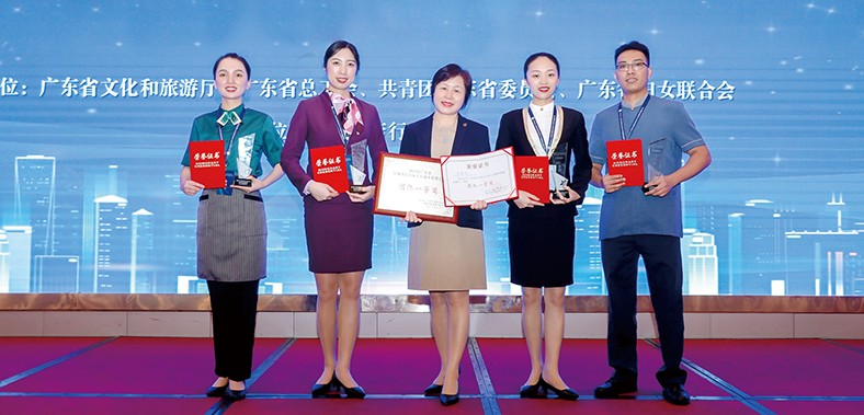 4.9月2日下午,由省文化和旅游廳、省總工會(huì)、團(tuán)省委、省婦聯(lián)聯(lián)合舉辦的“2022年全省星級(jí)飯店從業(yè)人員服務(wù)技能競(jìng)賽活動(dòng)”在廣州落下帷幕。塘廈三正半山溫泉酒店的滕慧敏、陳劍新、李素蓉、周采佩等4名員工代表東莞市參賽,最終他們不負(fù)使命,以出色的表現(xiàn)奪得團(tuán)體一等獎(jiǎng),以及前廳服務(wù)、客房服務(wù)、中餐服務(wù)、西餐服務(wù)等四個(gè)單項(xiàng)二等獎(jiǎng)。