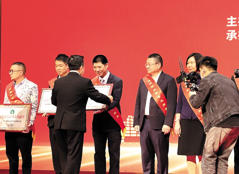 17.2月13日,東莞市以“錨定高質(zhì)量、莞企勇?lián)?dāng)”為主題,舉辦全市非公有制經(jīng)濟(jì)人士?jī)?yōu)秀中國(guó)特色社會(huì)主義事業(yè)建設(shè)者和光彩事業(yè)貢獻(xiàn)獎(jiǎng)?lì)C獎(jiǎng)典禮暨高質(zhì)量發(fā)展工商界交流會(huì),致敬東莞市優(yōu)秀建設(shè)者和東莞市光彩獎(jiǎng)企業(yè)。我們?nèi)瘓F(tuán)被授予“東莞市光彩事業(yè)貢獻(xiàn)獎(jiǎng)”,集團(tuán)董事長(zhǎng)助理莫永康代表我集團(tuán)上臺(tái)領(lǐng)獎(jiǎng)。