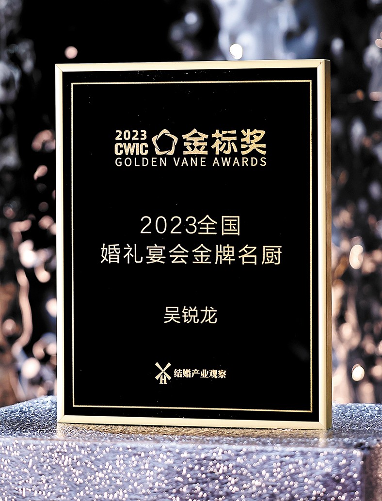 4.12月5日,樟木頭三正半山酒店行政總廚吳銳龍榮獲金標(biāo)獎(jiǎng)2023全國(guó)婚禮宴會(huì)金牌名廚獎(jiǎng)。