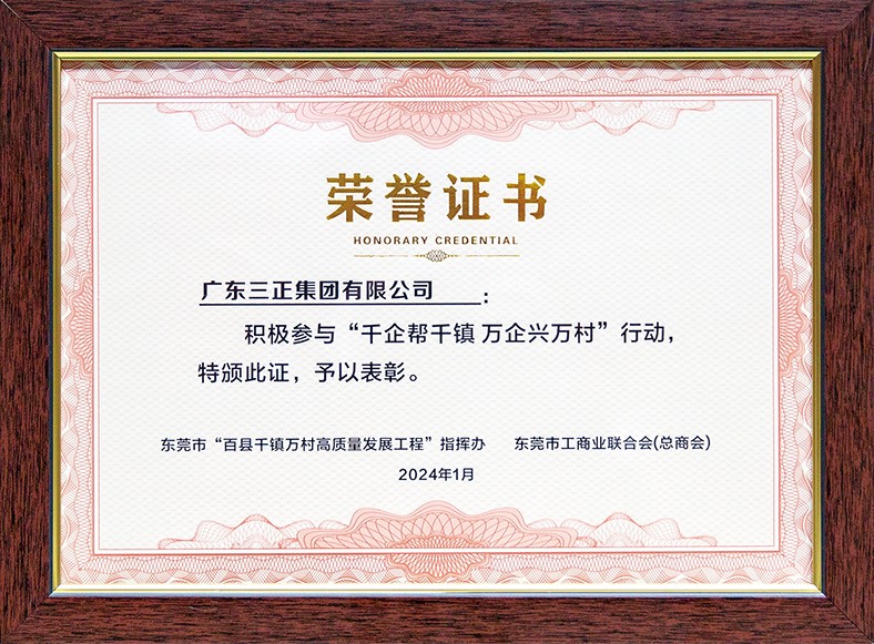 13.1月4日,企業(yè)助力東莞“百千萬(wàn)工程”對(duì)接會(huì)召開,會(huì)上我集團(tuán)受到表彰,被授予“積極參與‘千企幫千鎮(zhèn) 萬(wàn)企興萬(wàn)村’行動(dòng)”榮譽(yù)證書。