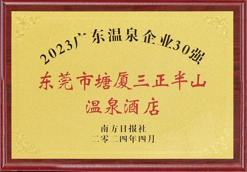 2.12月,塘廈三正半山溫泉酒店入選“2023市級(jí)文明旅游示范單位”和“2023 年?yáng)|莞市文旅體企業(yè)20 強(qiáng)”。