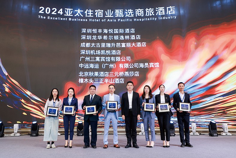 5.7月26日,以“共筑新生態(tài),共促新發(fā)展”為主題的2024亞太住宿業(yè)合作大會(huì)(APHS)在深圳召開。會(huì)上,樟木頭三正半山酒店從眾多酒店中脫穎而出,榮獲“2024亞太住宿業(yè)甄選商旅酒店”獎(jiǎng)項(xiàng)。