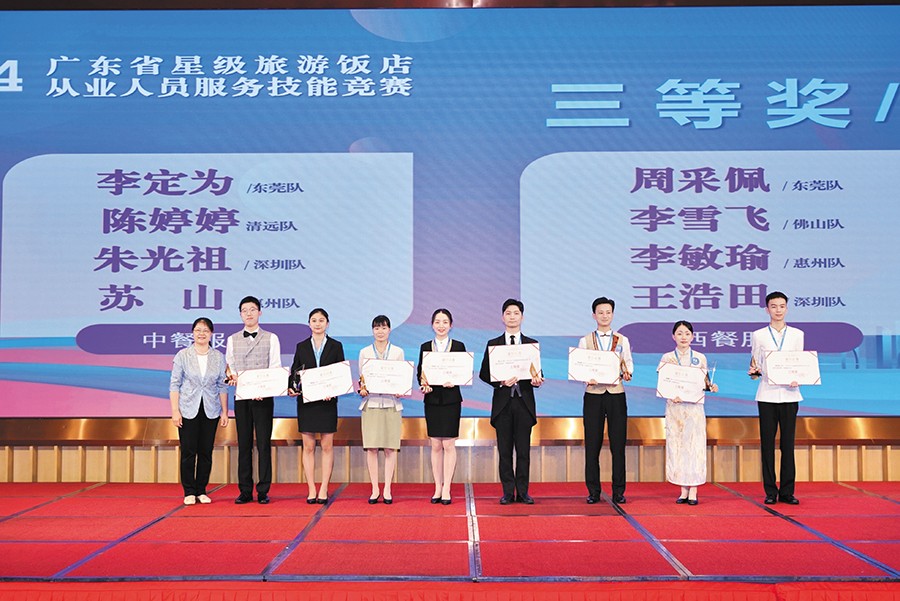 3.9月6日下午,由廣東省文化和旅游廳、省總工會(huì)、團(tuán)省委、省婦聯(lián)聯(lián)合舉辦的“2024年全省星級(jí)飯店從業(yè)人員服務(wù)技能競(jìng)賽活動(dòng)”在廣州圓滿結(jié)束。塘廈三正半山溫泉酒店的周采佩、李定為兩位員工代表東莞市參賽,并憑借出色表現(xiàn)為東莞奪得團(tuán)體三等獎(jiǎng)。