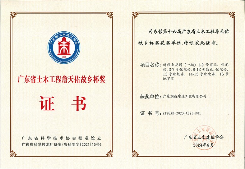 1.11月,第十六屆廣東省土木工程詹天佑故鄉(xiāng)杯獎(jiǎng)評(píng)審結(jié)果揭曉,三正鵬程上花園(一期)1-2號(hào)商業(yè)、住宅樓,3-7號(hào)住宅樓,8-12商業(yè)、住宅樓,13號(hào)垃圾房,14-15號(hào)配電房,16號(hào)地下室憑借其卓越的品質(zhì)和前瞻性的設(shè)計(jì),獲此殊榮。