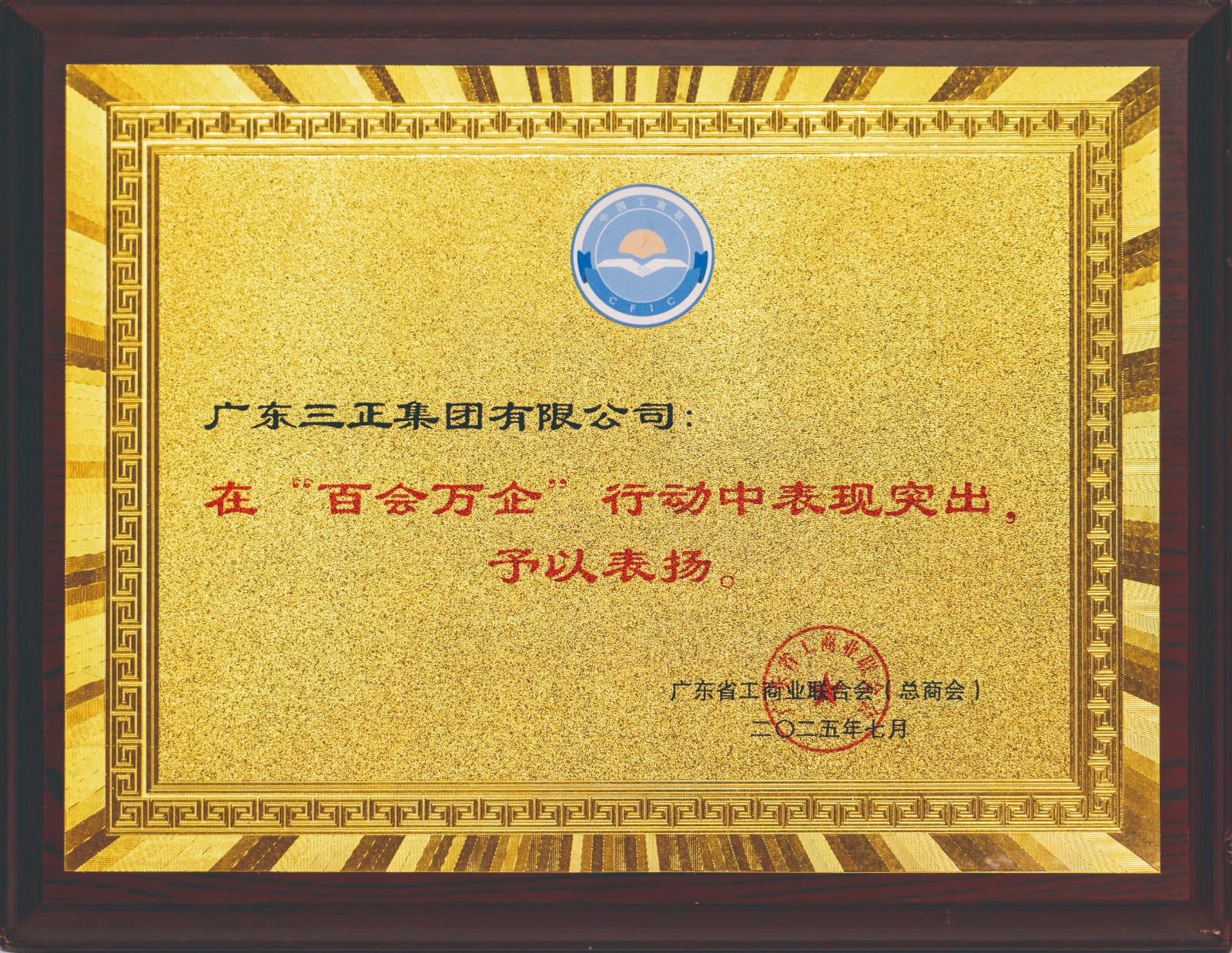 5.7月7日至8日,全省工商聯(lián)實(shí)施“百千萬(wàn)工程”推進(jìn)會(huì)在清遠(yuǎn)召開。會(huì)上宣讀了《關(guān)于表?yè)P(yáng)參與“百會(huì)萬(wàn)企”行動(dòng)表現(xiàn)突出商會(huì)和民營(yíng)企業(yè)的通知》,并為受表?yè)P(yáng)單位頒牌,我集團(tuán)在“百會(huì)萬(wàn)企”行動(dòng)中表現(xiàn)突出獲得省工商聯(lián)通報(bào)表?yè)P(yáng)。
