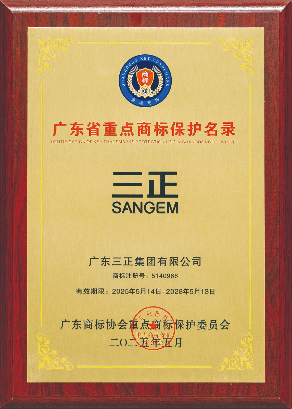4.8月,廣東商標(biāo)協(xié)會(huì)重點(diǎn)商標(biāo)保護(hù)委員會(huì)公布了2024年度廣東省重點(diǎn)商標(biāo)保護(hù)名錄的納入名單,我集團(tuán)第36類“三正SANGEM”商標(biāo)脫穎而出榮譽(yù)入選。